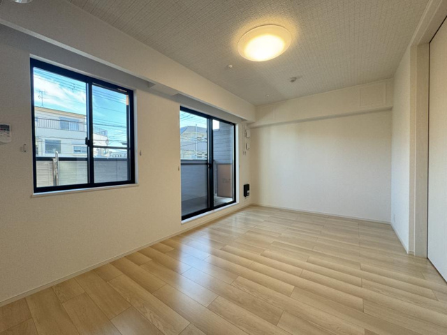 早速「パルク大西」のお部屋をご紹介していきます。こちらのリビングには、居心地と利便性が詰まった魅力ポイントが満載です。お部屋はリビングルーム12.0帖、寝室が6.0帖の間取りになっており広めのお部屋になります。カウンターキッチンは、リビングと調理スペースが一体となった対面式のキッチンレイアウトです。その最大の特徴は、調理をしながら家族や来客とコミュニケーションがとれることです。壁や扉で仕切られていないため、開放感があり部屋全体が広く感じられます。視線が抜けることで空間が明るくなり、明るいリビングとの相性も抜群です。また、配膳や片付けの動線が短くスムーズになる点も魅力です。キッチンからダイニングテーブルまでの距離が近いため、料理の運搬が楽になり家事効率がアップします。さらに、カウンターを作業台や簡易の食事スペースとして活用できるため、「パルク大西」のリビングは、広さと明るさに加えて、料理中も自然と会話が生まれるカウンターキッチン、清潔感あるフローリング、そして安心・快適な設備が集約された心地よさ抜群の空間です。一人暮らしでも二人暮らしでも、心地よい“居場所”として活躍する住まいです。
