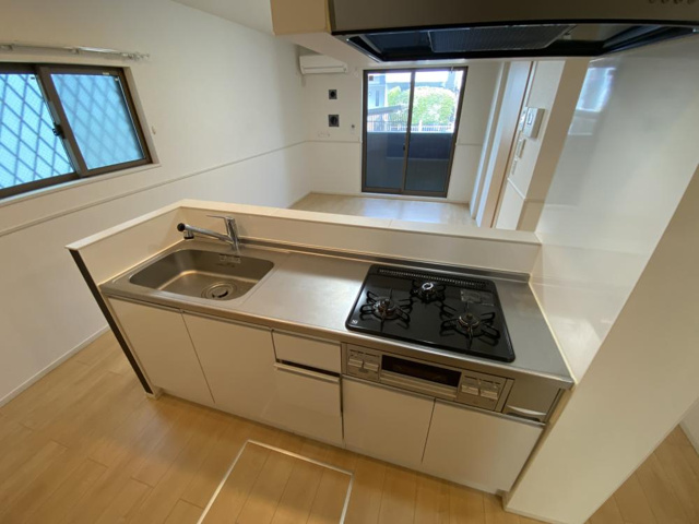 「サウザンド・ワン」のキッチンは、システムキッチンとカウンターキッチンを採用しており、日常の調理や家事が快適に行える設計です。システムキッチンは収納スペースや作業スペースが充実しているため、調理器具や調味料の片付けがしやすく、キッチンを清潔に保ちやすいです。カウンターキッチンは、料理をしながらリビングの様子が見渡せる開放的なつくりになっており、家族やゲストとの会話やテレビ視聴など、コミュニケーションを損なわずに家事ができます。リビング・ダイニングとの一体感があるため、家全体をひとつの空間として使いたい方にとって大きなメリットです。また、コンロは複数口(2〜3口程度)設置可能なスペースがあるため、本格的な料理やおもてなし用の調理もしやすく、忙しい平日の食事準備もスムーズです。さらに、キッチンには収納用キャビネット・引き出しが多く設けられているため、锅・フライパン・食器などが整頓しやすく、見た目もすっきりします。キッチンの床はフローリング仕様で、掃除がしやすく衛生的。水や油の飛び散りも簡単に拭き取れるため、日々のメンテナンスが楽です。特に、小さな子どもがいる家庭や料理好きな住人にとって、清潔に保つことができる構造は大きな魅力です。「サウザンド・ワン」の水まわり設備は、バス・トイレが別になっていることが大きな魅力です。日本の賃貸では一般的ですが、これによって入浴中にトイレを他の家族が使えるなど、生活のストレスが軽減されます。浴室には追い焚き機能付きのお風呂が備わっているため、家族が帰宅時間のバラバラな生活でも、いつでも温かいお風呂に入れて便利です。忙しい朝や遅い夜にも、快適な入浴環境が整っています。また、浴室乾燥機が設置されているので、雨の日や梅雨時でも洗濯物を浴室内で乾かすことができるという利点もあります。これは特に賃貸生活では重宝されるポイントです。トイレは独立しており、温水洗浄便座(シャワートイレ)が一般的に設置されています。寒い季節でも快適に使える設備で、日本の生活に慣れている人・外国の人でも安心して使える人気設備です。洗面所は独立しており、シャンプードレッサータイプの洗面台が備えられています。洗顔・歯磨き・ヘアセットなどの動線がまとまっているため、朝の身支度が効率的です。収納スペースや鏡下の棚などもあり、洗面周りをすっきりおしゃれに使える点も良いところです。
